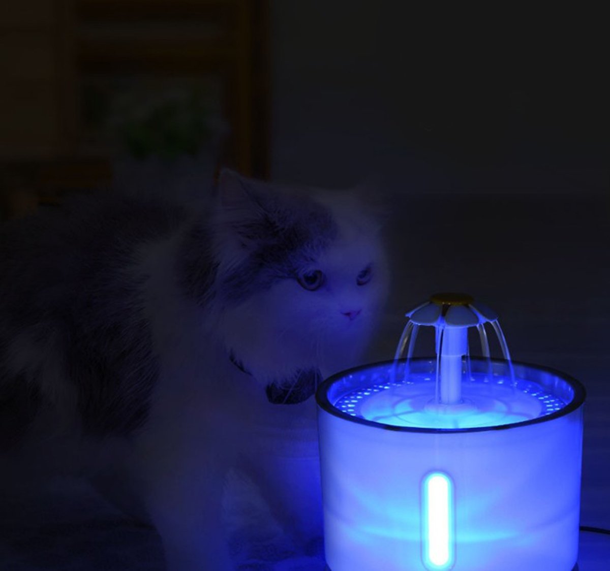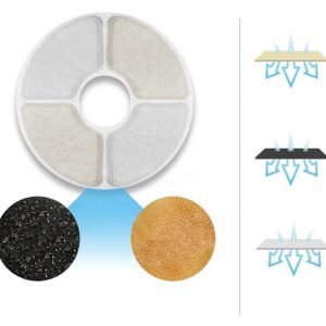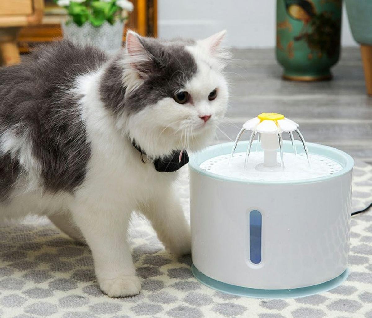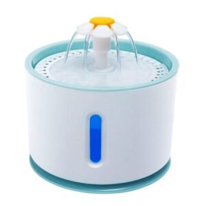 Adăpator automat pentru animale de companie. Design atractiv în formă de fântână cu mai multe duze. Un rezervor mare de apă cu o capacitate de până la 2,4 litri asigură o utilizare pe termen lung. Sistemul de filtrare (cu un filtru înlocuibil) oferă apă proaspătă și curată pentru animalul nostru de companie. Adapatorul este dotat cu o pompa silentioasa si eficienta, aparatul putand functiona cu succes noaptea. Aparatul are trei moduri de funcționare diferite (debitul de apă). Siguranța de utilizare este sporită de funcțiile de oprire automată și semnalizare apă scăzută (cu iluminare de fundal LED).