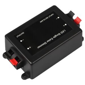 Dimmer / comutator wireless pentru iluminare cu LED. Echipat cu o telecomandă fără fir (RF) care vă permite să opriți în mod convenabil lumina și să setați luminozitatea benzilor LED din avion de la 1% la 100%. O funcție suplimentară sunt cele 3 opțiuni pentru amânarea stingerii benzilor LED și setarea până la 4 niveluri predefinite ale intensității luminii benzilor. Conector convenabil de alimentare și ieșire (terminale). Controlerul de produs are 1 canal cu o sarcină maximă de 8A. Telecomanda folosește comunicarea radio, care nu interferează cu funcționarea altor dispozitive, iar raza sa este de până la 15 metri în spațiu deschis. Toate hardware-ul de montaj și cablajul necesare sunt incluse.