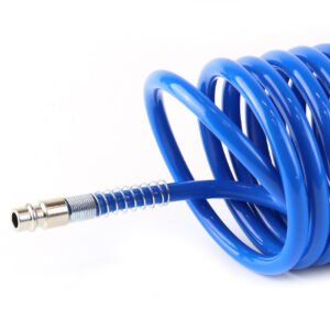 Furtun spiralat din polietilena pentru scule pneumatice profesionale. Furtun spiralat perfect conceput pentru toate tipurile de dispozitive pneumatice.