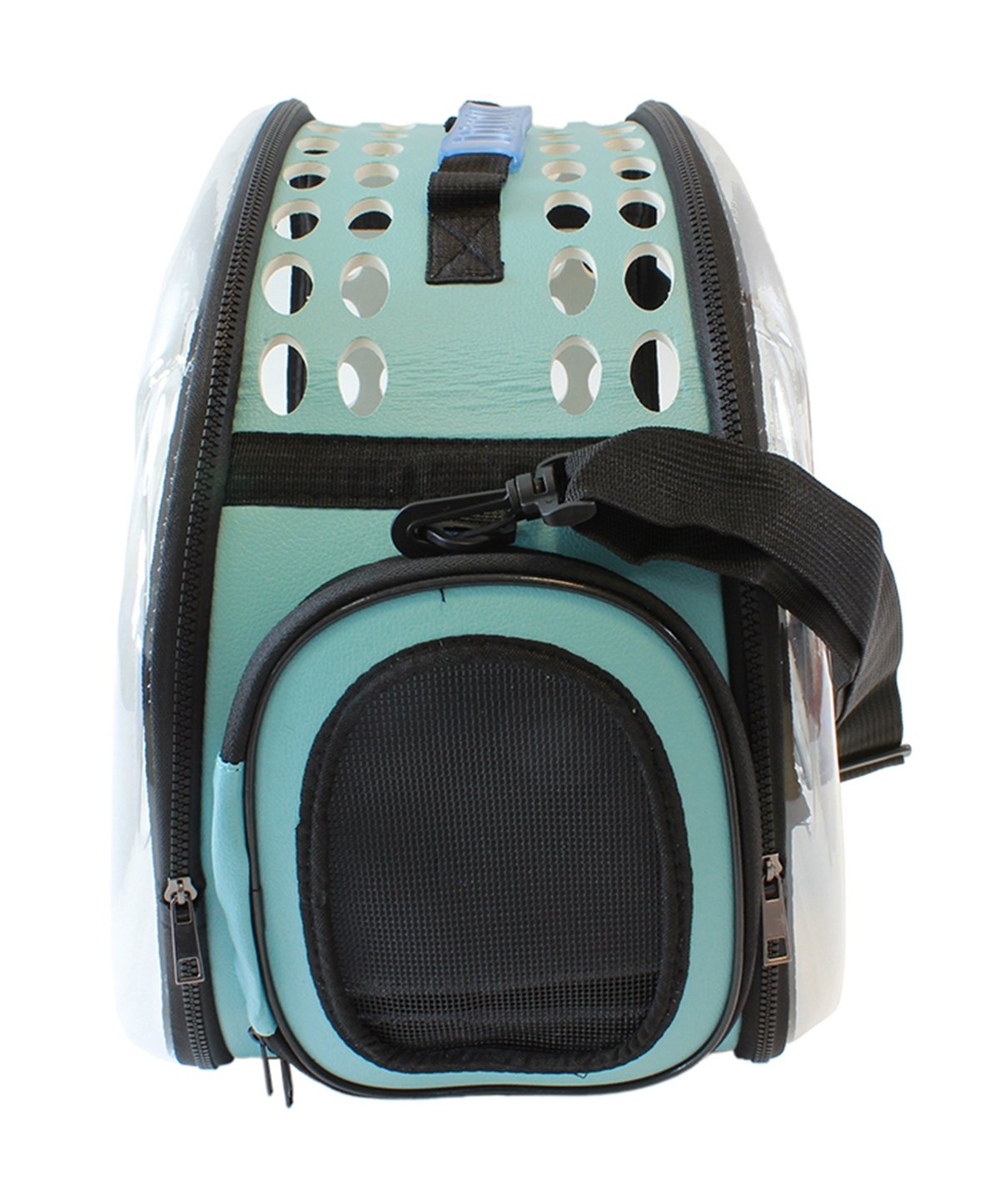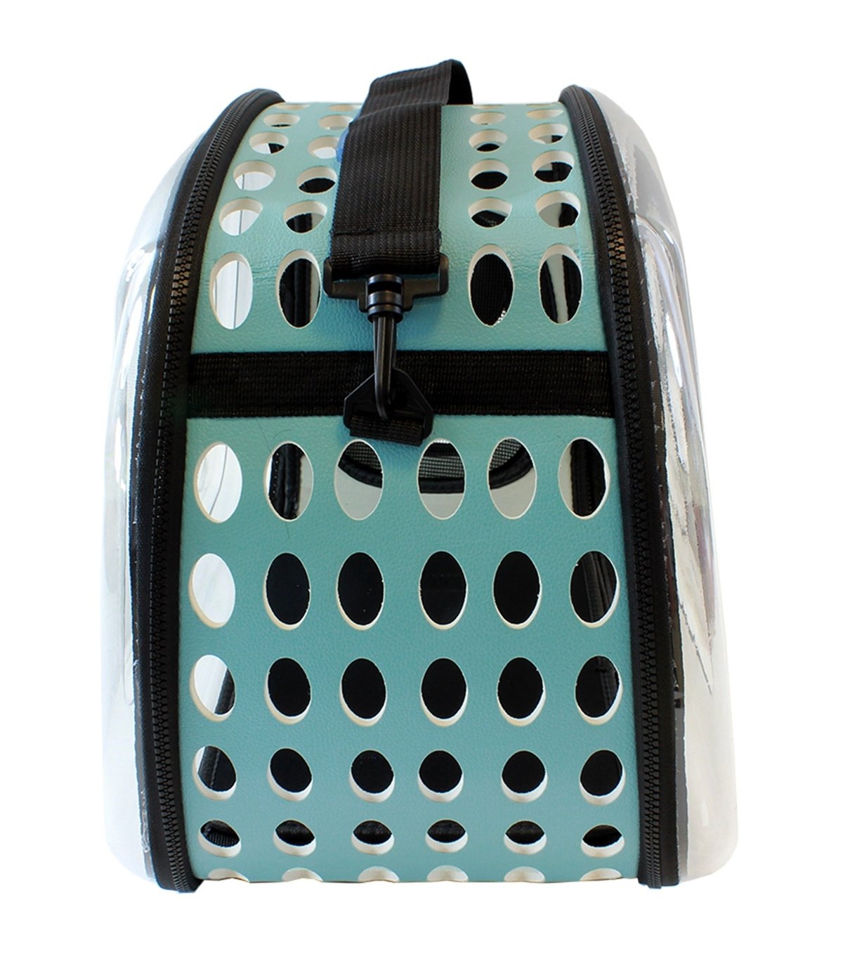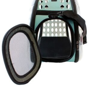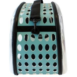 Geantă de transport de înaltă calitate pentru animalele de companie mici. Perfect pentru a ne muta pisica sau iepurele la orice distanță. Designul extrem de confortabil va asigura confort atât pentru noi cât și pentru animale. Materialul puternic din care au fost confecționate transportoarele, un mâner solid și o curea de umăr reglabilă asigură o utilizare lungă și fără probleme a produsului. Geanta este respirabilă și sigură pentru animalul de companie datorită sistemului de ventilație. Confortul de utilizare este asigurat și de un fermoar dublu pe ambele părți ale suportului. Pereții laterali transparenți asigură faptul că animalul este în contact cu lumea și minimizează stresul asociat cu transportarea acestuia.