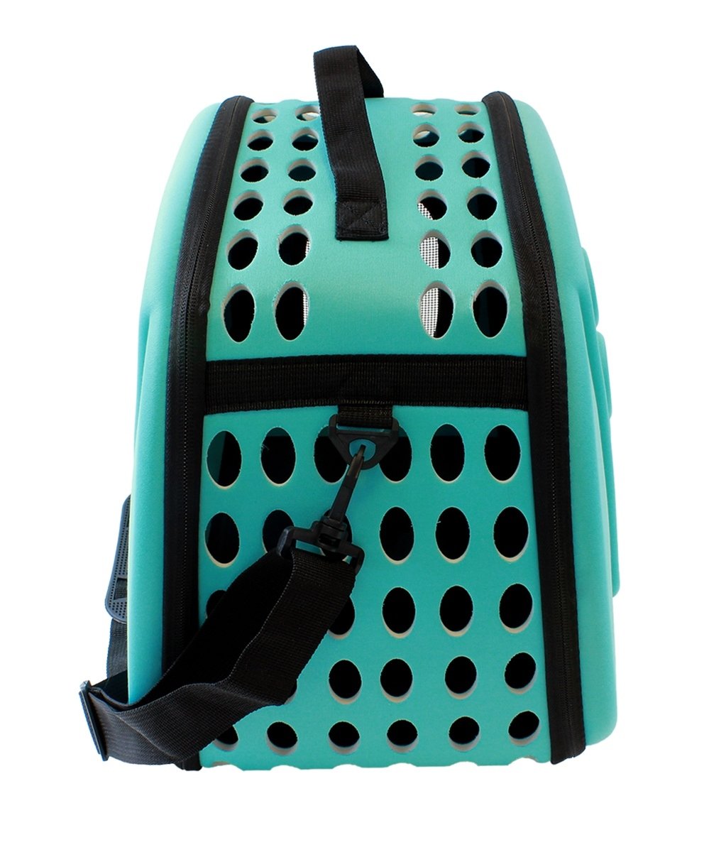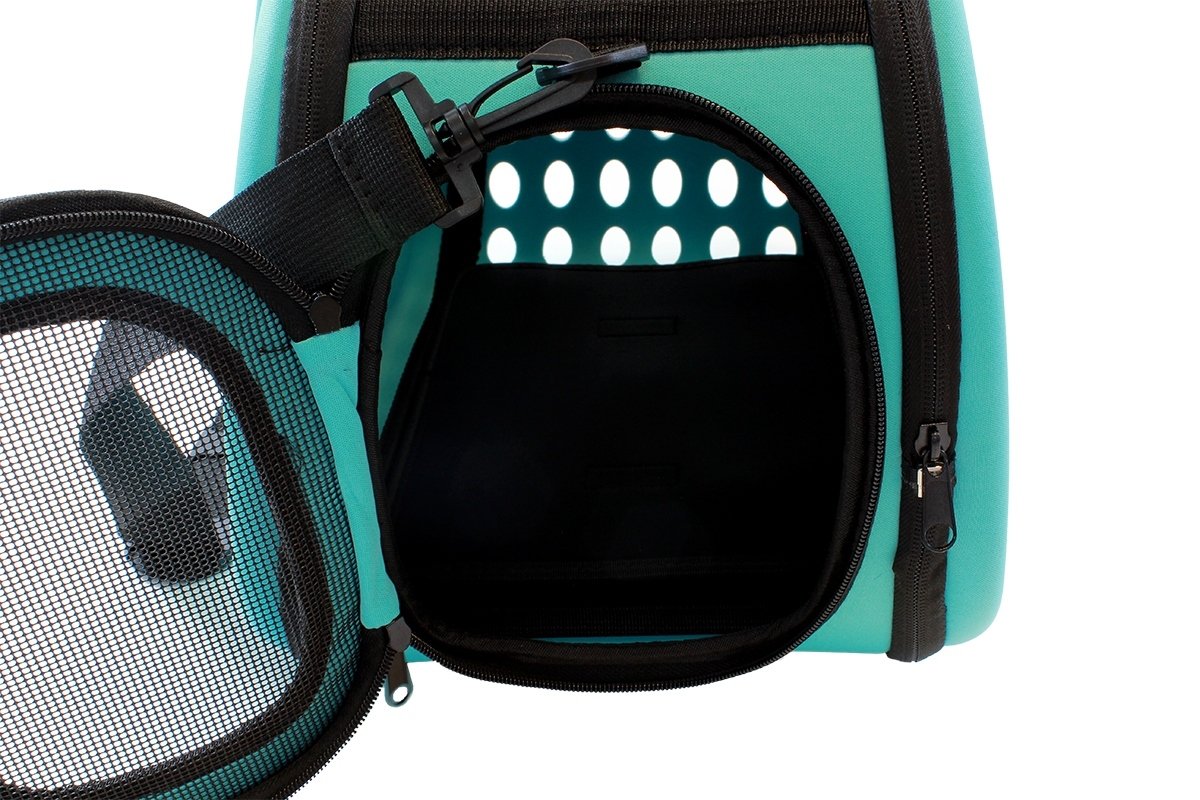 Geantă de transport de înaltă calitate pentru animalele de companie mici. Perfect pentru a ne muta pisica sau iepurele la orice distanță. Designul extrem de confortabil va asigura confortul atât pentru noi, cât și pentru animal. Materialul puternic din care au fost confecționate transportoarele, un mâner solid și o curea de umăr reglabilă asigură o utilizare lungă și fără probleme a produsului. Geanta este respirabilă și sigură pentru animalul nostru de companie datorită sistemului de ventilație. Confortul de utilizare este, de asemenea, asigurat de un fermoar dublu pe ambele părți ale suportului.