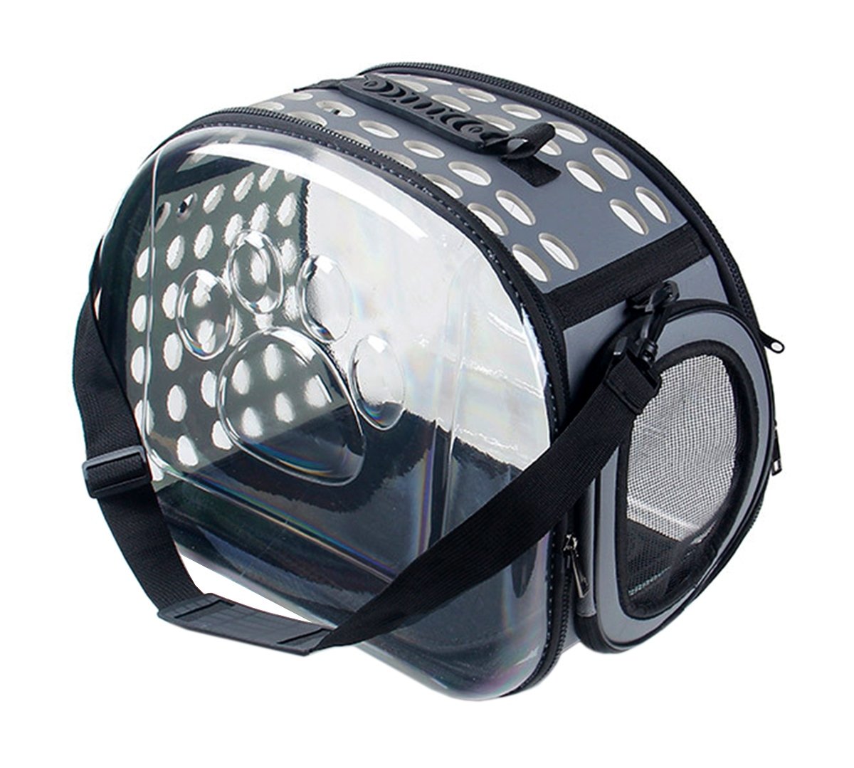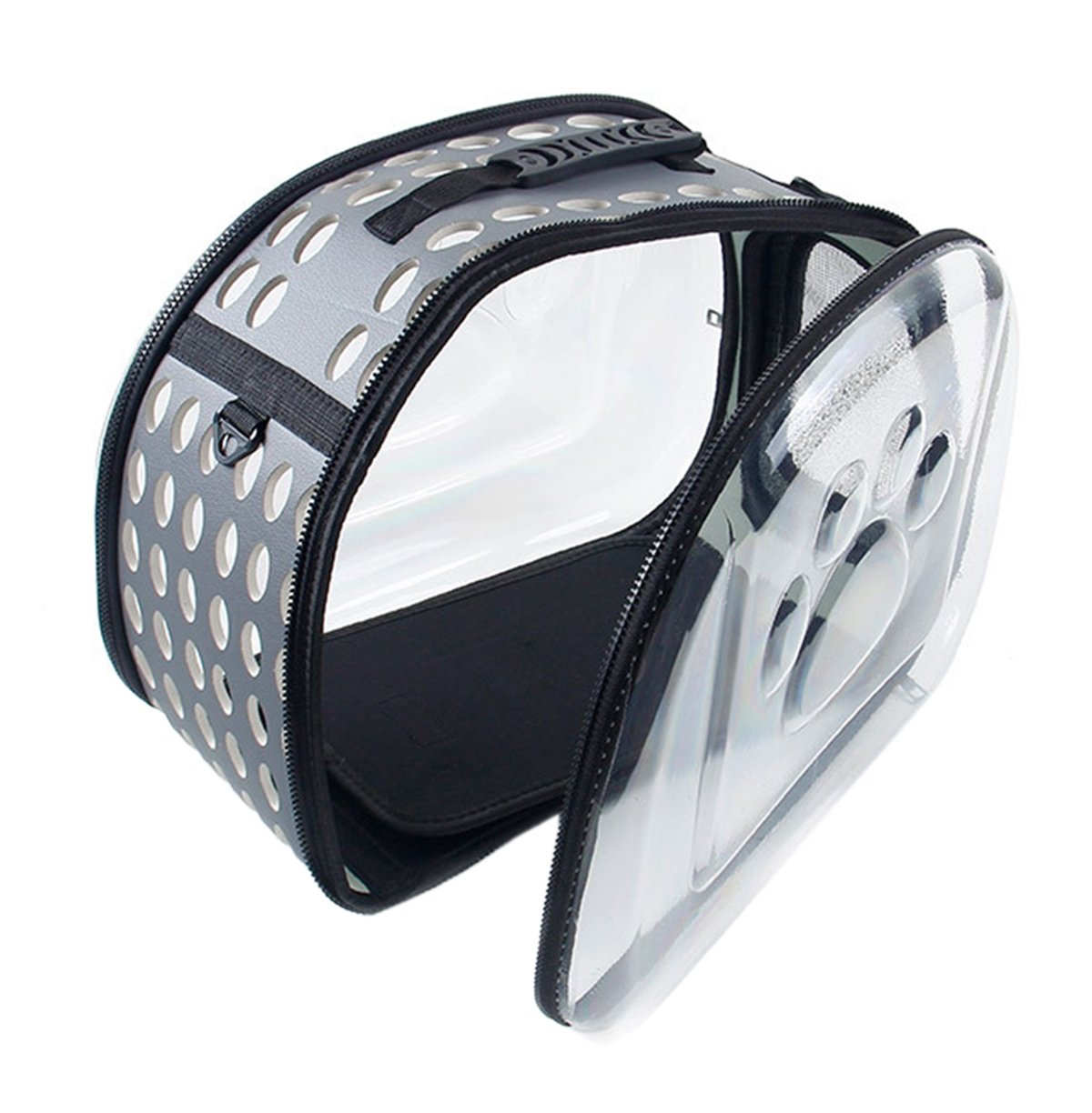 Geantă de transport de înaltă calitate pentru animalele de companie mici. Perfect pentru a ne muta pisica sau iepurele la orice distanță. Designul extrem de confortabil va asigura confort atât pentru noi cât și pentru animale. Materialul puternic din care au fost confecționate transportoarele, un mâner solid și o curea de umăr reglabilă asigură o utilizare lungă și fără probleme a produsului. Geanta este respirabilă și sigură pentru animalul de companie datorită sistemului de ventilație. Confortul de utilizare este asigurat și de un fermoar dublu pe ambele părți ale suportului. Pereții laterali transparenți asigură faptul că animalul este în contact cu lumea și minimizează stresul asociat cu transportarea acestuia.