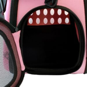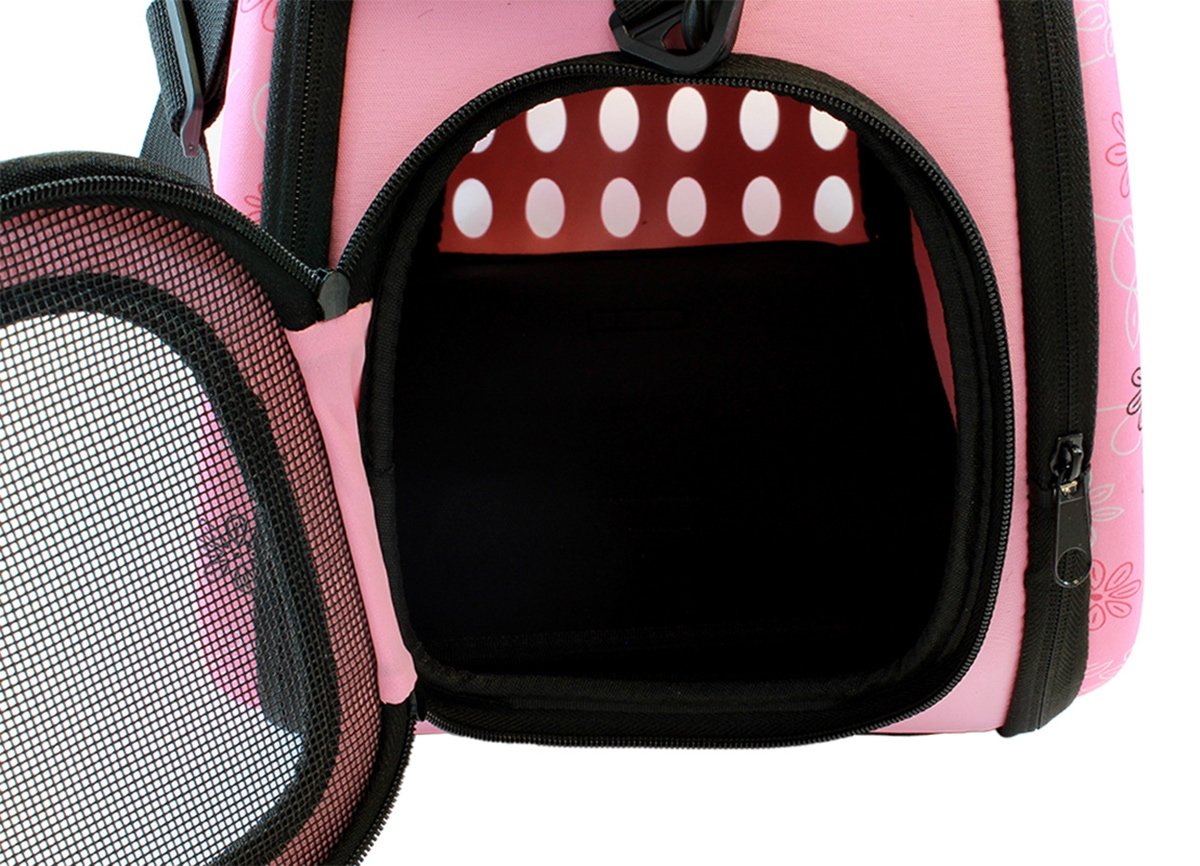 Geantă de transport de înaltă calitate pentru animalele de companie mici. Perfect pentru a ne muta pisica sau iepurele la orice distanță. Designul extrem de confortabil va asigura confortul atât pentru noi, cât și pentru animal. Materialul puternic din care au fost confecționate transportoarele, un mâner solid și o curea de umăr reglabilă asigură o utilizare lungă și fără probleme a produsului. Geanta este respirabilă și sigură pentru animalul nostru de companie datorită sistemului de ventilație. Confortul de utilizare este, de asemenea, asigurat de un fermoar dublu pe ambele părți ale suportului.
