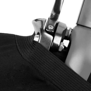 - Pe partea din față și din spate a husei există benzi elastice, datorită cărora aderă mai bine la roțile vehiculului cu două roți.