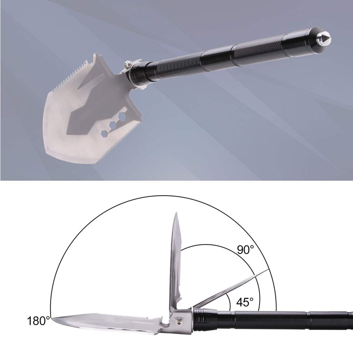 Un kit de supraviețuire constând dintr-o lopată multifuncțională echipată cu o serie de unelte necesare supraviețuirii. Lopata este complet pliabilă și depliabilă – completă cu o husă practică, purtarea ei este foarte confortabilă.