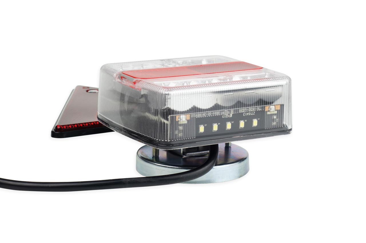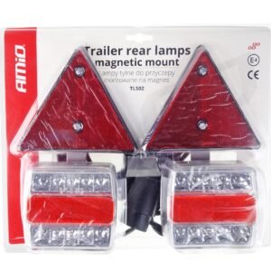 Setul de lampi cu LED cu triunghiuri reflectorizante cu aprobare E4 permite asamblarea si demontarea simpla a lampilor datorita constructiei luand in considerare magnetii puternici.