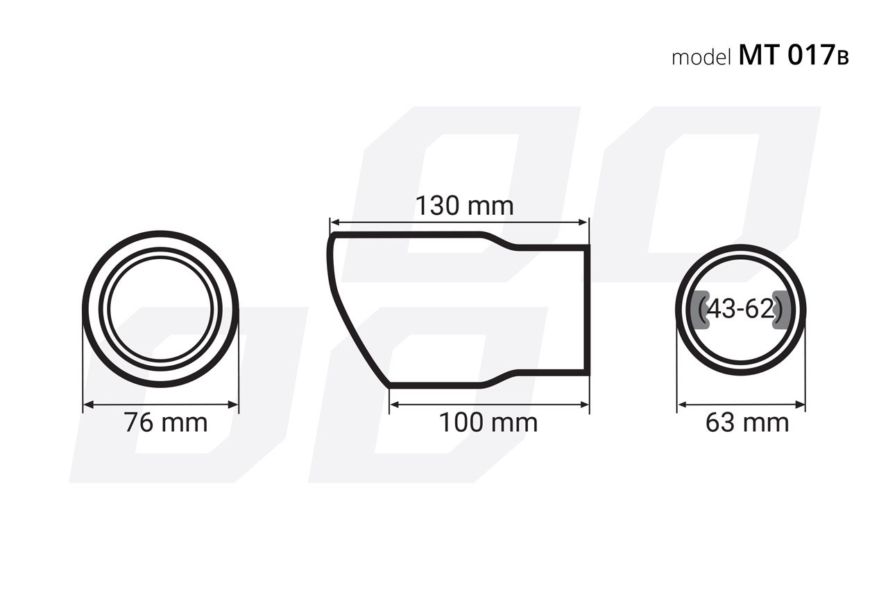 Diametru de montare: 43 – 62 mm