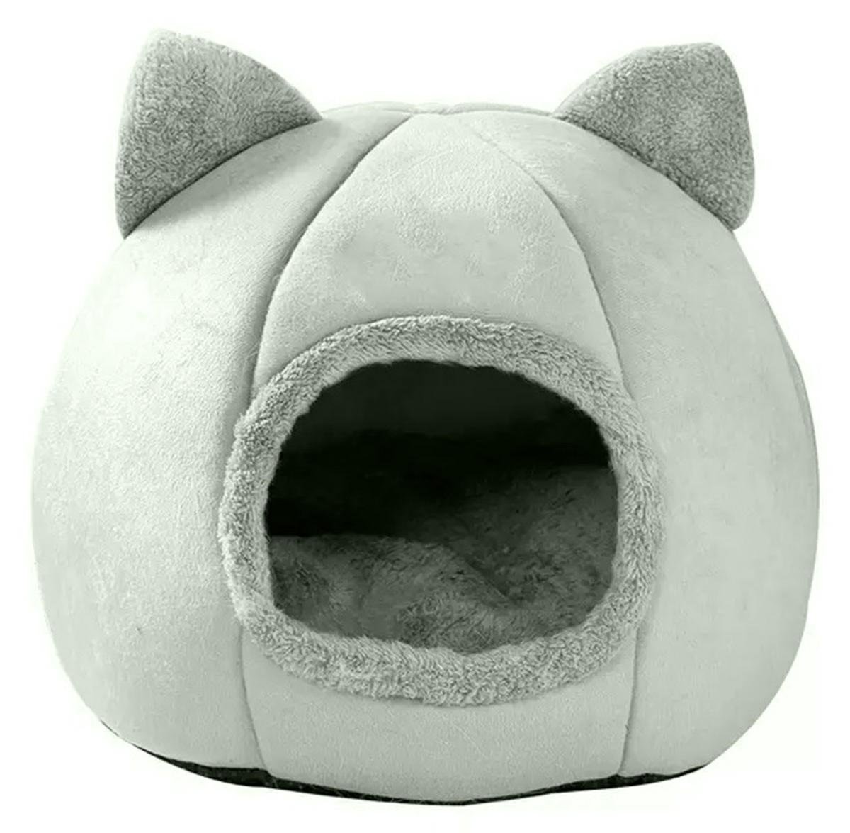 - Pat pentru animale în formă de cabină închisă cu urechi de pisică.