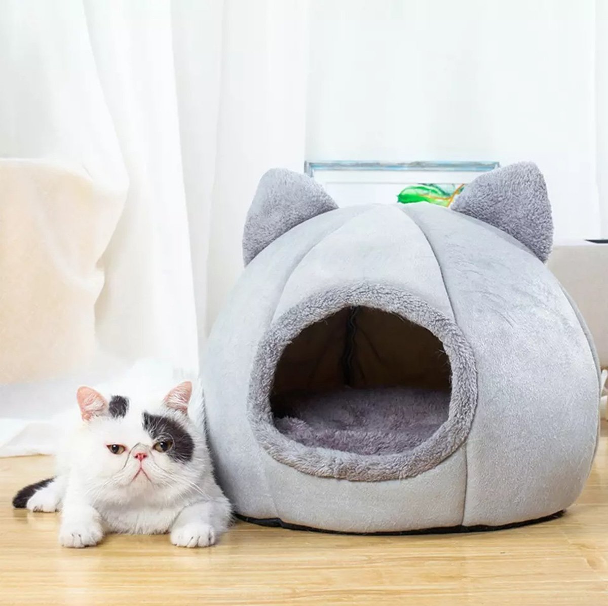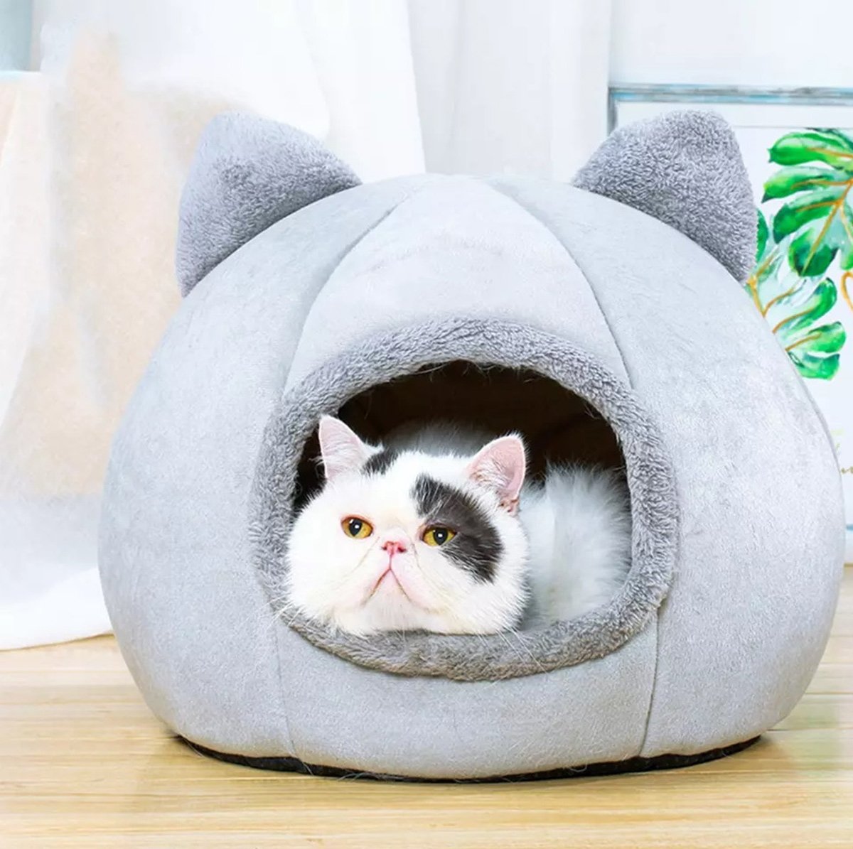Un pat confortabil si estetic pentru animalul tau. Este foarte moale și potrivit pentru animalele de companie. Design unic în formă de cabină închisă cu urechi de pisică. Pereții groși și fundul din material antiderapant asigură confort și siguranță animalelor noastre. Bârlogul a fost umplut cu spumă moale și deformabilă. Strat inferior confortabil, moale.