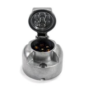 Priza remorca cu 13 pini. Priza este universala, deci se potriveste la orice tip de remorci usoare, platforme auto, etc. Carcasa este din plastic. Este echipata cu conector de 12 V si cu pini din metal antioxidant.