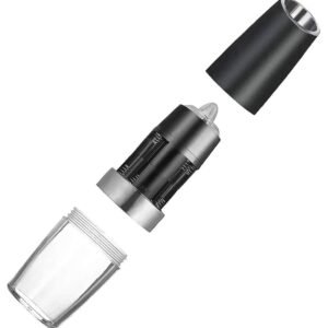 Râșniță piper și sare electrică. Dispozitiv extrem de convenabil care macină instantaneu mirodeniile. Doar rotiți dispozitivul la 180 de grade pentru a porni râșnița, ceea ce este indicat de lumina de fundal LED estetică. Produsul are un rezervor transparent care va ușura să verificați cât de mult condiment a mai rămas în el. Aparatul este alimentat de 6 baterii AAA 1.5V.