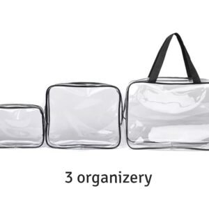 Un organizator turistic confortabil format din până la 3 elemente (organizatori). Toate sunt cu fermoar și au o mulțime de compartimente și buzunare. Este o modalitate excelentă de a vă menține organizate produsele cosmetice de zi cu zi. Sunt grozave și pentru călătorii, depozitând cu ușurință toate cele mai importante produse cosmetice și alte mici accesorii de acest tip, precum ruj, pudră, bețișoare sau pensule. Datorită designului inteligent, puteți încăpea în ele și lenjerie intimă și haine. Întregul lucru se va încadra cu ușurință în bagajul de mână și nu va ocupa atât de mult spațiu valoros. Închiderile cu fermoar fac mult mai dificilă pierderea lucrurilor mici transportate, păstrându-le în ordine. Cel mai mare element al setului are un mâner confortabil, datorită căruia este convenabil de transportat.