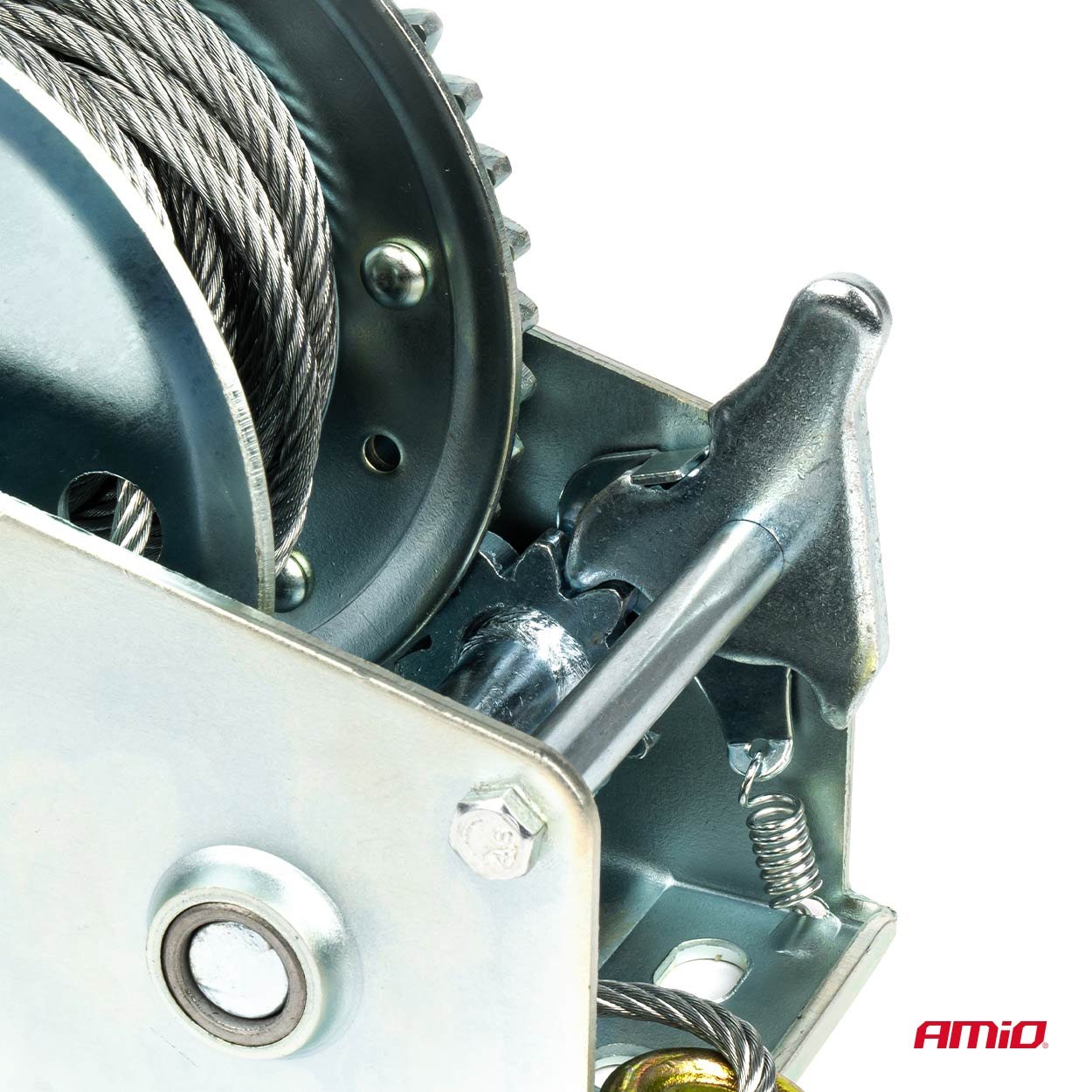 Troliul este echipat cu un blocaj de siguranță din oțel cu mecanism cu arc, care asigură o utilizare în siguranță. Întreaga structură este realizată din materiale de înaltă calitate, ceea ce garantează durabilitate și fiabilitate.