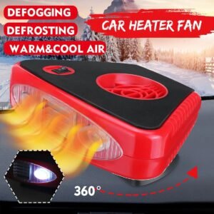 Acest produs are functii de incalzire, dezaburire, ventilatie si iluminare. Poate fi conectat la bricheta cu o tensiune de 12V. Pentru a alege una dintre optiuni, apasati butonul din spatele carcasei. In pozitia „I” se va aprinde ventilatorul. Pozitia „II” va aprinde incalzitorul si in partea sa frontala se va aprinde un LED rosu. Produsul are si o lanterna cu diode LED foarte puternice – pe partea din fata, pentru a-l porni, trebuie sa apasati butonul care se afla in partea superioara a carcasei. Dispozitivul are o siguranta, care se afla in partea inferioara a dispozitivului.