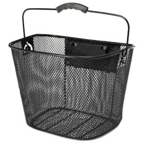 Un coș de bicicletă din metal elegant și încăpător – conceput pentru a fi montat pe ghidon! Demontare foarte usoara si rapida datorita folosirii unui conector rapid CLICK montat pe ghidon! Datorită acestui fapt, coșul poate fi montat pe aproape orice model de bicicletă.Încărcarea sa maximă este de până la 6 kg, astfel încât să îți poți transporta cu ușurință rucsacul sau cumpărăturile în el.