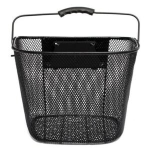 - Coș de bicicletă din plasă metalică neagră. Coșul este montat pe ghidon folosind un suport de tip „CLICK” cu montare rapidă.