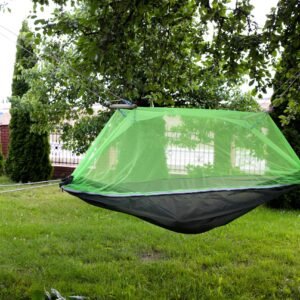Un hamac turistic din material nailon este perfect pentru călătorii.