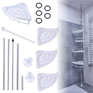 Dacă nu ai suficient spațiu în baie, o poliță de colț pentru baie este o soluție perfectă – o poți așeza la duș fără niciun instrument. Pur și simplu pliați raftul și plasați-l în locul ales. Designul telescopic îi va permite să se potrivească perfect în baia ta!