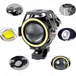 Proiector LED cu Lupa, Angel Eye ALB si Devil Eye RED, alimentare 12V, pentru Off-Road, ATV, SSV, UTV