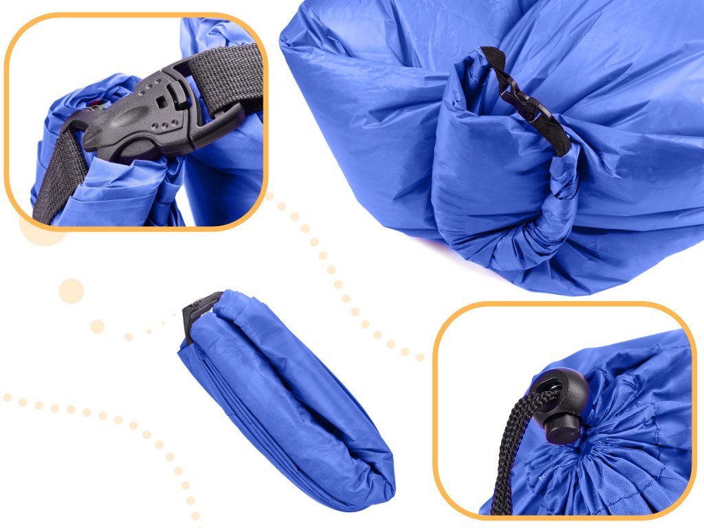 Este nevoie de doar câteva secunde pentru a-l desface și nu are nevoie de nicio pompă. Luați aer cu o singură mișcare lină împotriva vântului, rostogoliți-l în locul deschiderii și fixați clemele. Canapeaua se va umple de aer, transformându-se într- o saltea extrem de confortabilă.