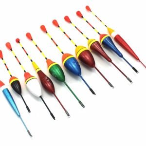 Set de 10 flotoare în linie de diferite greutăți. Perfect pentru pescuit. Fiecare dintre flotoare este o momeală adaptată preferințelor unui pește diferit. Culorile vii atrag atenția peștilor, crescând eficacitatea capturii.