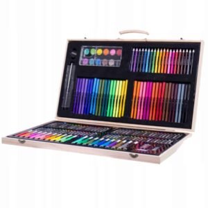 Acest produs iese în evidență față de alte seturi de artă deoarece este găzduit într-o carcasă îngrijită din lemn real. Toate elementele setului sunt bine plasate în interior, iar totul poate fi închis cu încuietori puternice . Puteți lua setul cu dvs. oriunde datorită mânerului confortabil.
