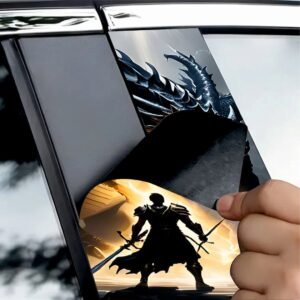 Set 2 folii printate outdoor pentru colantarea stâlpilor ușilor autoturismului dvs. Folia imprimată cu EcoSolvent Outdoor aderă pe orice suprafață plană, netedă. În cazul suprafețelor rugoase, aderența produsului va scadea considerabil.