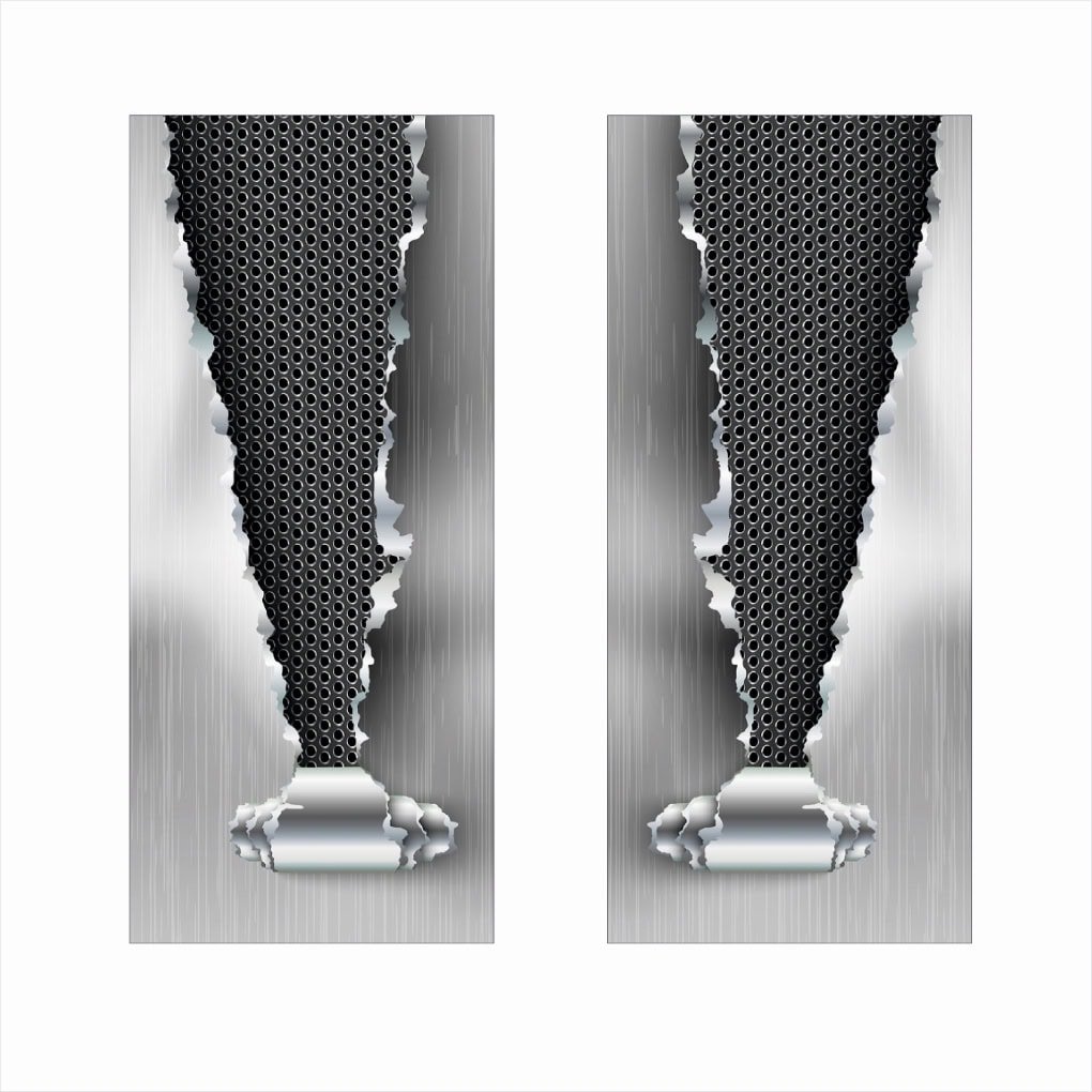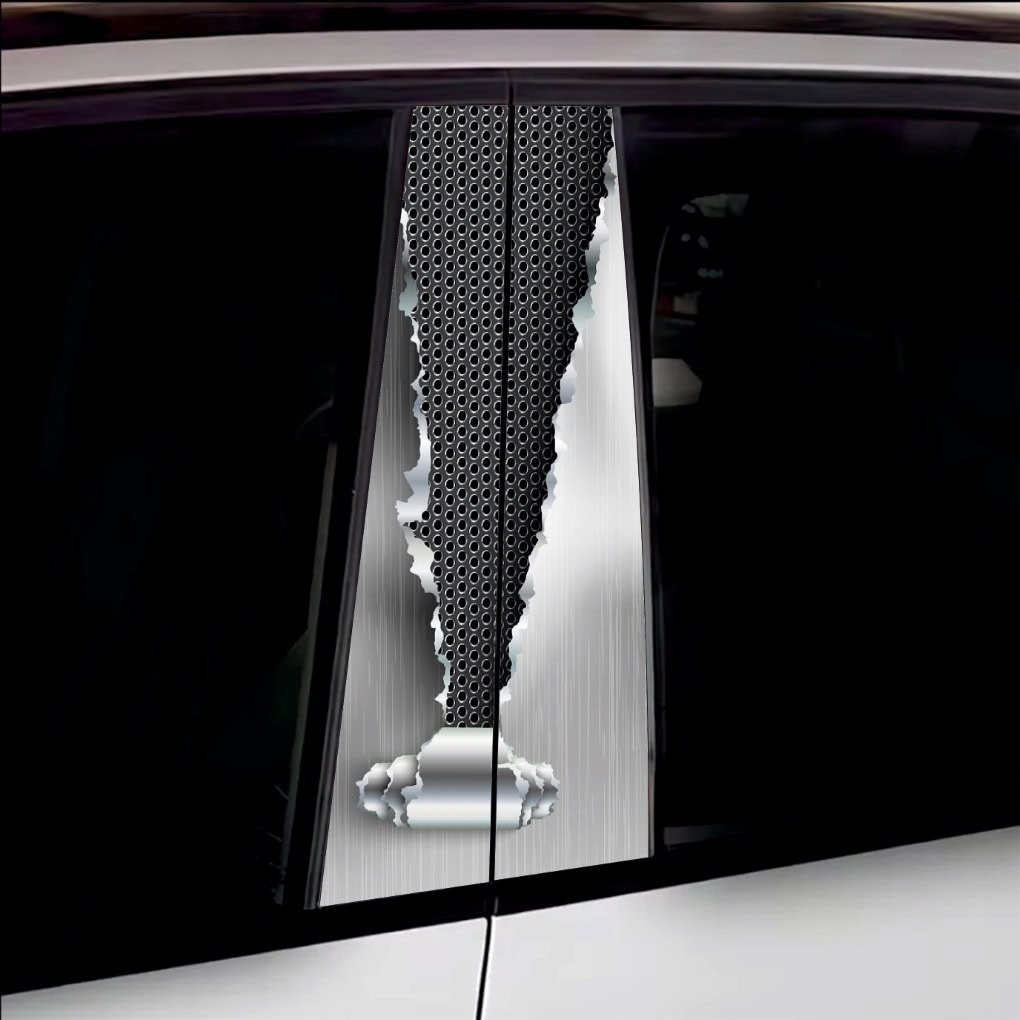 Set 2 folii printate outdoor pentru colantarea stâlpilor ușilor autoturismului dvs. Folia imprimată cu EcoSolvent Outdoor aderă pe orice suprafață plană, netedă. În cazul suprafețelor rugoase, aderența produsului va scadea considerabil.