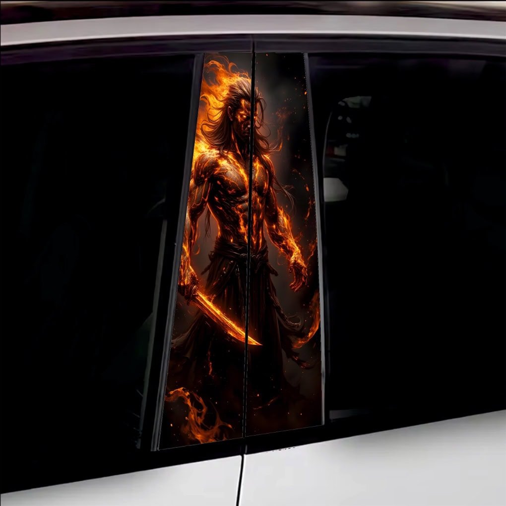 Set 2 folii printate outdoor pentru colantarea stâlpilor ușilor autoturismului dvs. Folia imprimată cu EcoSolvent Outdoor aderă pe orice suprafață plană, netedă. În cazul suprafețelor rugoase, aderența produsului va scadea considerabil.
