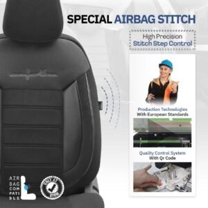 Produsul este realizat din materiale de tapițerie de cea mai înaltă calitate . Combinația dintre cele mai bune materiale și atenția sporită la detalii în timpul producției asigură un aspect exclusiv și o durabilitate excepțională , precum și o protecție excelentă a scaunelor împotriva murdăriei și abraziunilor.