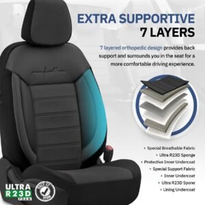 Toate materialele sunt complet laminate cu spumă poliuretanică, împiedicând mișcarea huselor în raport cu scaunele.